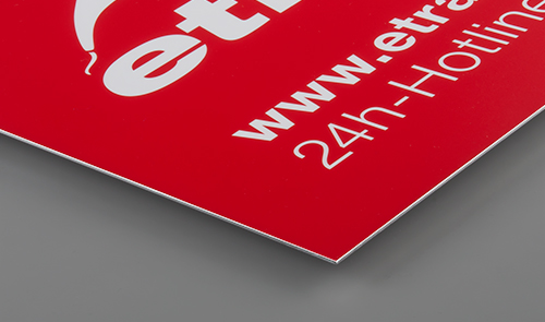 Aluminiumtafel - mit Aufhängeschienen rückseitig - Materialstärke 2mm, Oberfläche glänzend, inklusive Druck - Format: 700 x 1000 mm (b x h) B1 hoch | signfactory24.ch